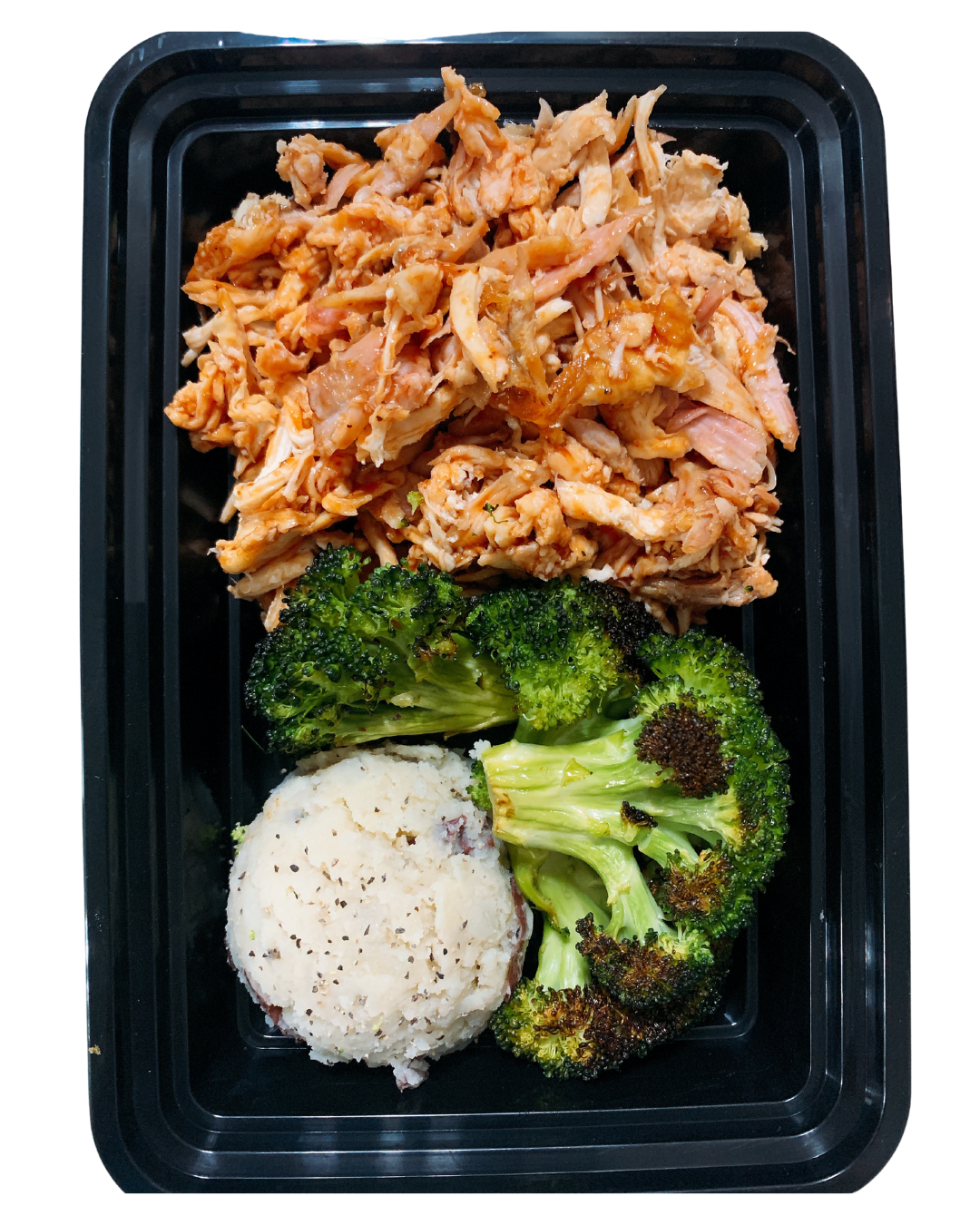 Soft, shredded chicken with a smoky BBQ flavor—tender and delicious.